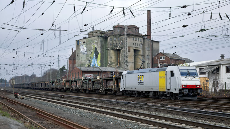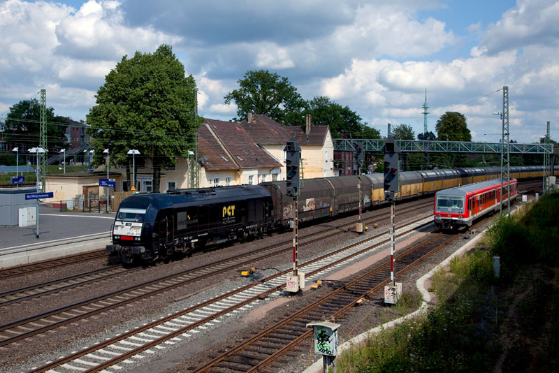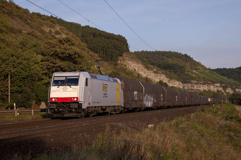 Noch ein Highlight, die 185 637-6 der PCT Altmann-Gruppe mit einem Autologistikzug.