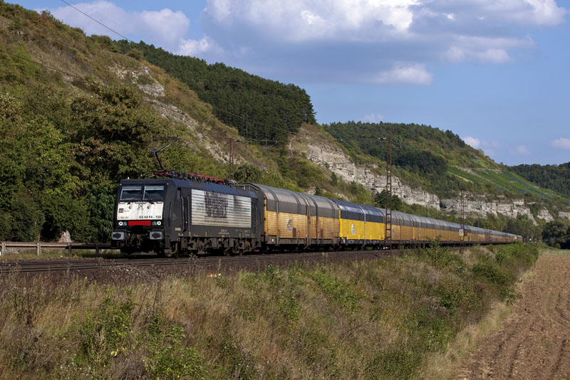Die ES 64 F4-035 von PCT Altmann mit einem vollen Autologistikzug.