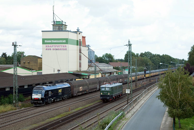Schwer arbeitend grummelte die ER 20-013 der PCT Altmann mit einem langen Autologistik-Leerzug von Cuxhaven…