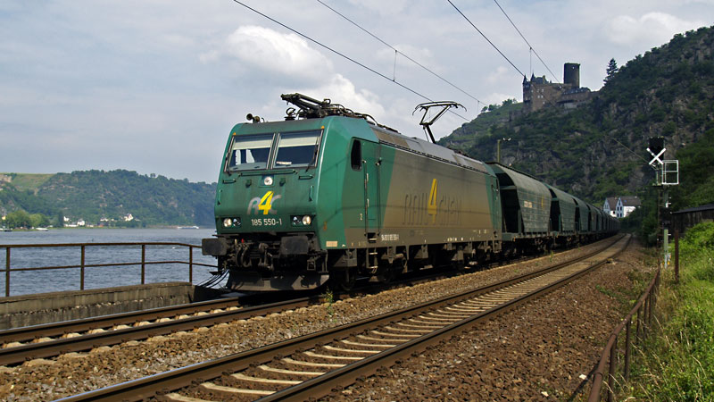 St. Goarshausen stand die R4C 185 550-1 mit ihrem grünen Cerealienzug