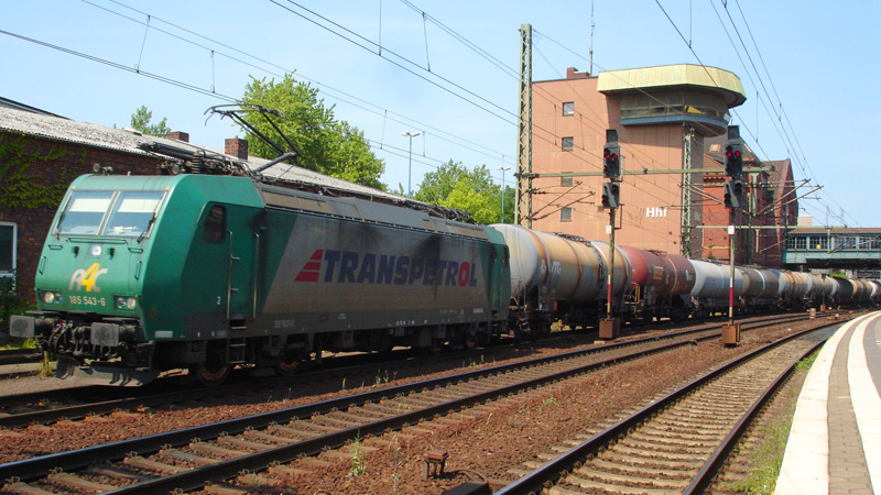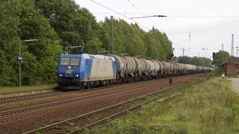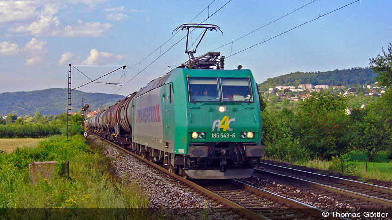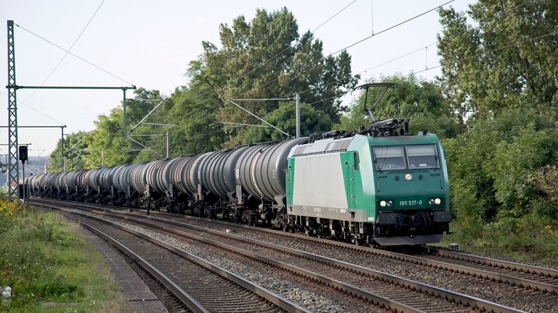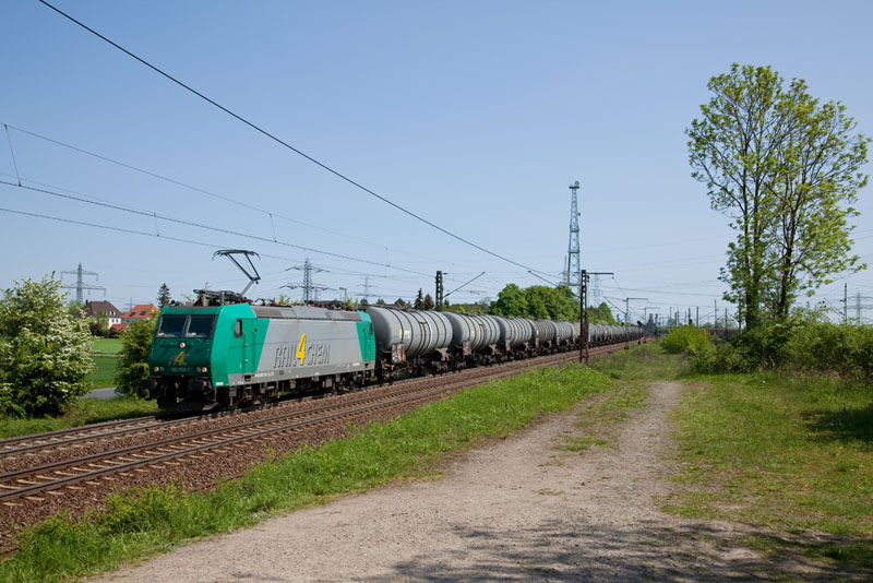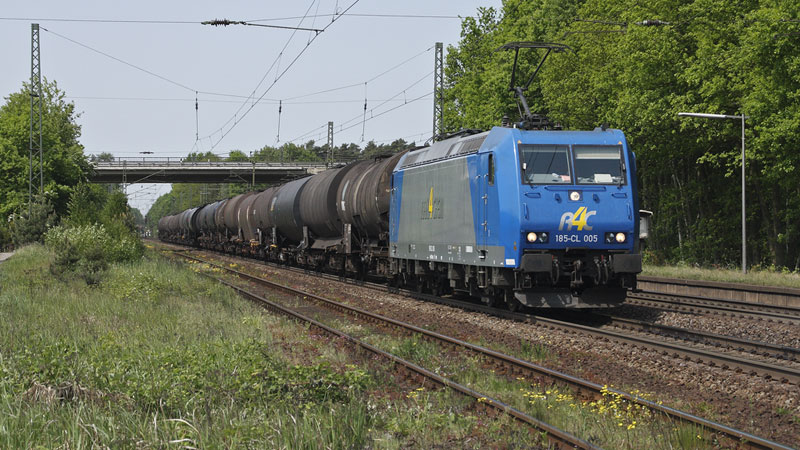 185-CL 004 zieht einen schweren Kesselwagenganzzug vom Südosten nach