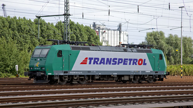 winkt der Lokführer von seiner 185 543-7 "Transpetrol" der