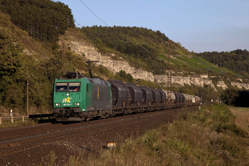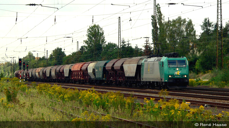 gleich eine Rail4Chem! Hier ist die R4C 185 533-7 mit ihrem Getreideganzzug