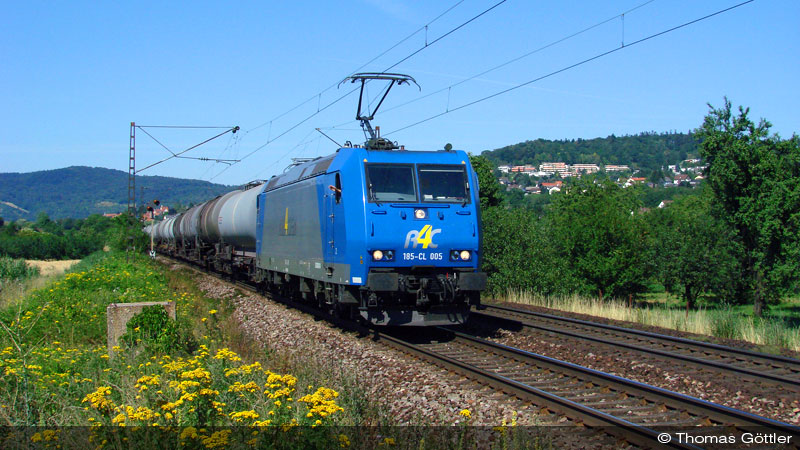 Hier sind noch viele ehemalige Rail4Chem-Loks unterwegs, hier die 185-CL 006.