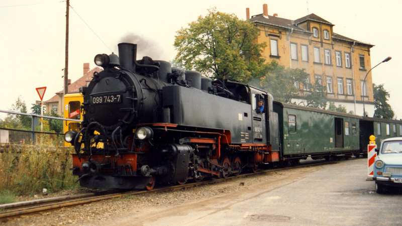 zwischen Radebeul Ost und Radeburg. Hier fährt die 099 743 der Deutschen