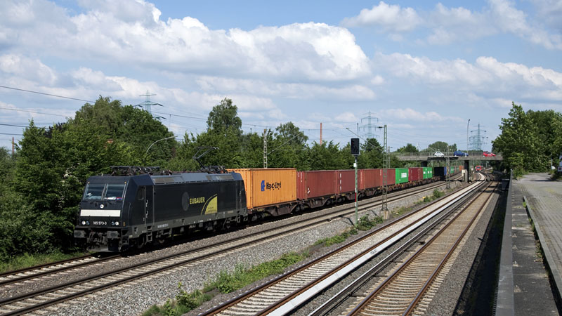 Die 185 573-3 von Alexander Neubauer mit einem Containerzug nach Waltershof.