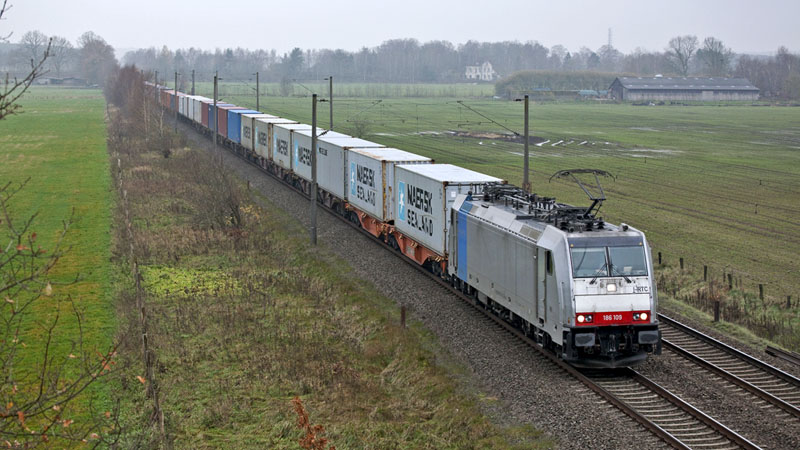 Die ehemalige Rail Traction Company-Lok 186 109 mit einem Containerzug nach Hamburg!