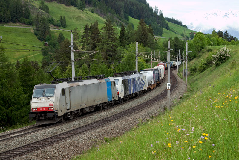 Nach Italien ging dieser KLV-Zug mit der RTC 186 110 und der Lokomotion 189 914.