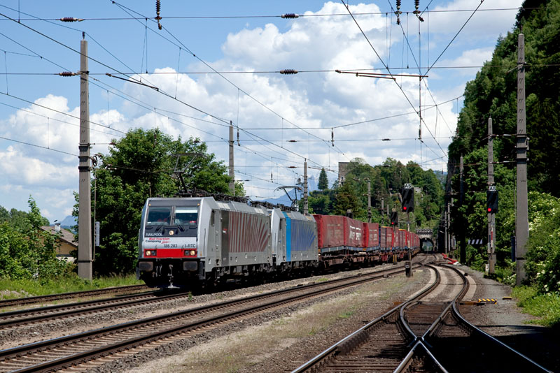 Die Rail Traction Company-Loks 186 283 und 186 102 mit dem WINNER nach Italien.