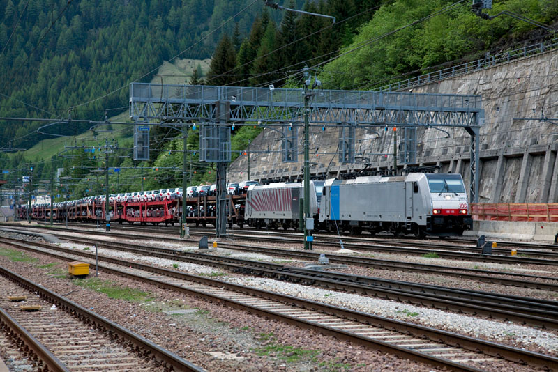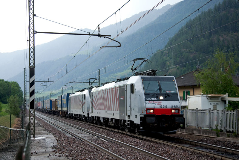 Die Deutschen in Italien… 186 285 und 186 284 der RTC mit ihrem KLV-Zug in den Süden.