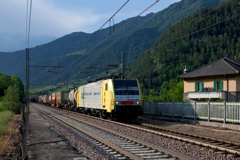 Endlich eine 189 in Italien! Die 189 905 der Rail Traction Company mit ihrem südwärts gehenden KLV-Zug.