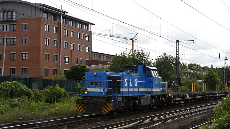 Spitzke G1206-SP-022 kam mit einem grünen Bauzug in Richtung Hamburg