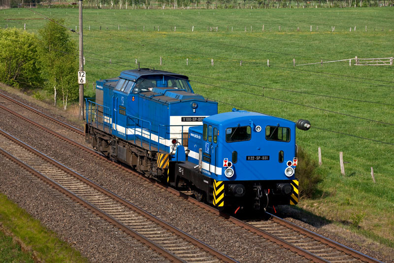 Die SPITZKE V 100-SP-009 zog die Kleinlok V 22-SP-031 in Richtung Hamburg.