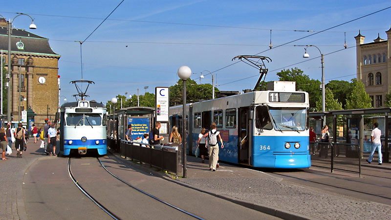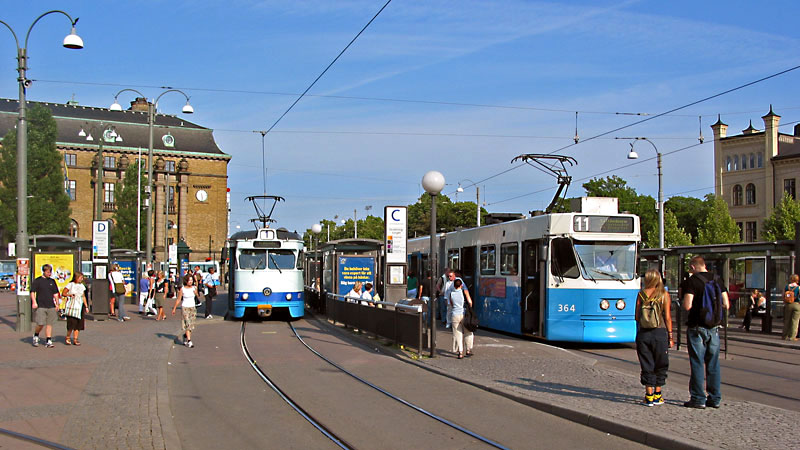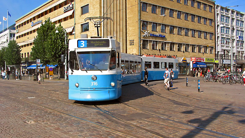 die Trams. Hier biegt TW 316 auf der Linie 3 nach Marklandsgatan in die