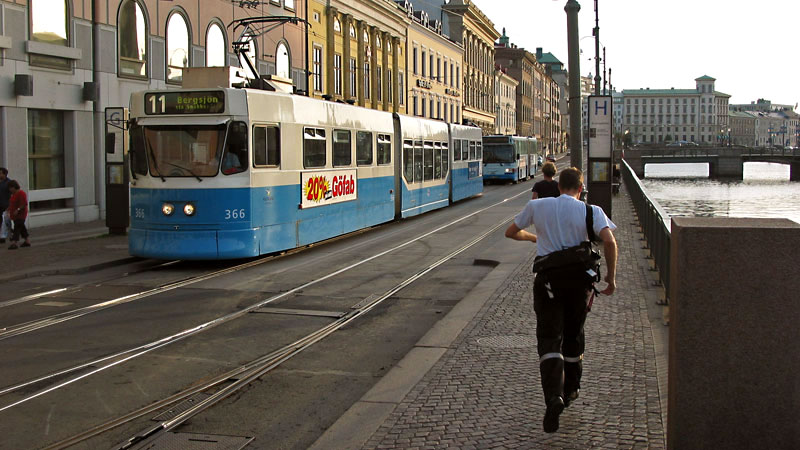 Linie 11 nach Bergsjön wartet auf die Freigabe der Kreuzung – wohin
