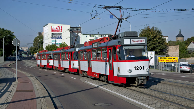 Heureka, die TATRAS sind noch unterwegs – hier Tw 1201 + 1202 und Bw 185 auf Dienstfahrt als Großzug!