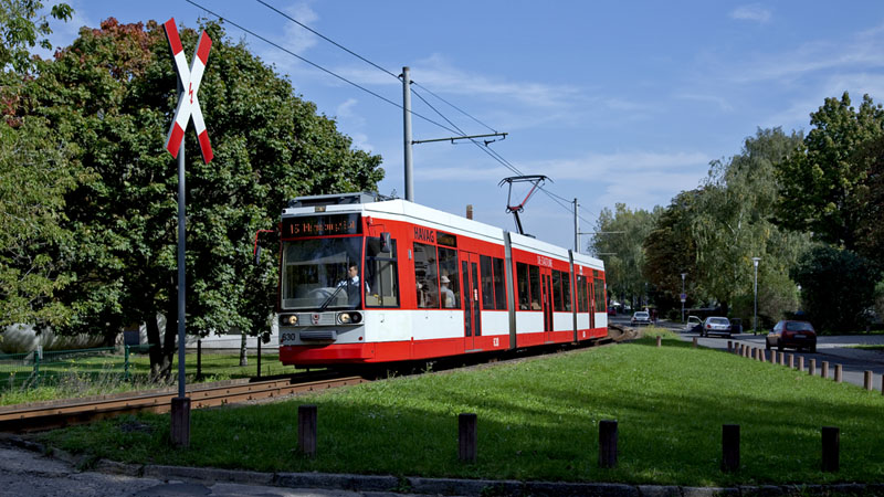 Mit Volkswagenwerbung fuhr Tw 655 in Richtung Steintorbrücke.