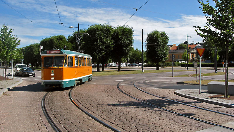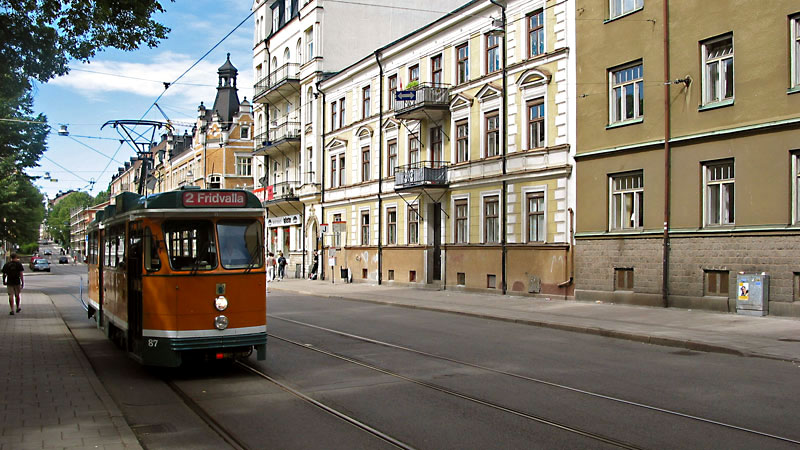 gibt es schwedische Vierachser – wie dieser TW 87 auf der Linie 2 nach