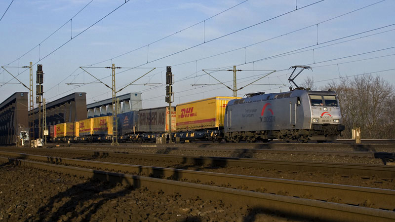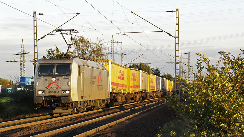 Menge DHL-Wechselpritschen hatte dieser Zug mit der TXLogistik 185 538-6