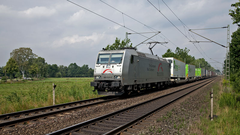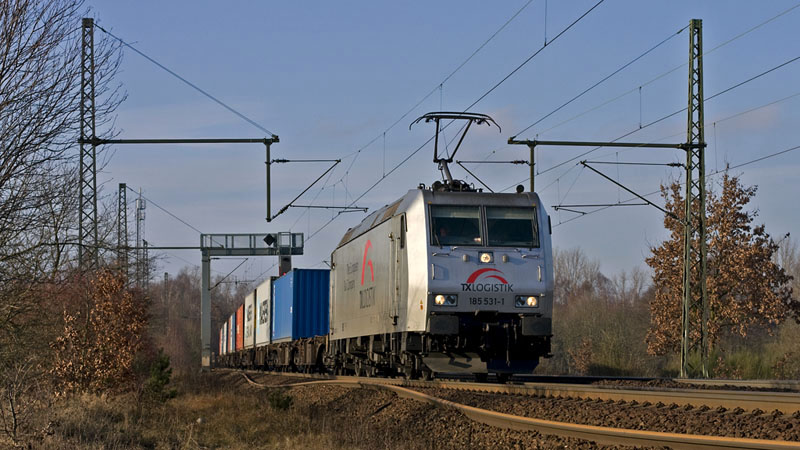 die TX Logistik war an diesem Sonntag aktiv – hier die 185 531-1