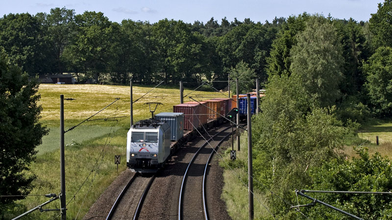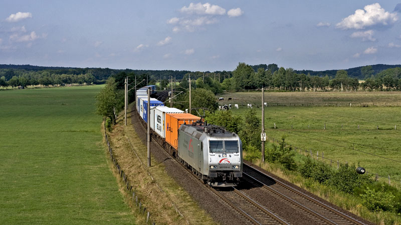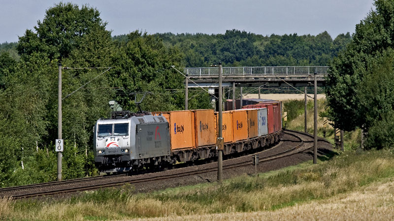 war die TX Logistik 185 538-6 wieder auf dem Rückweg mit ihrem Containerzug. Ramelsloh, 17. Juni 2009 |