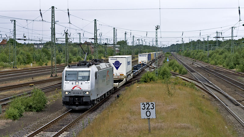dem Hafen heraus rollte dieser Containerzug mit der 185 531-1 der TX