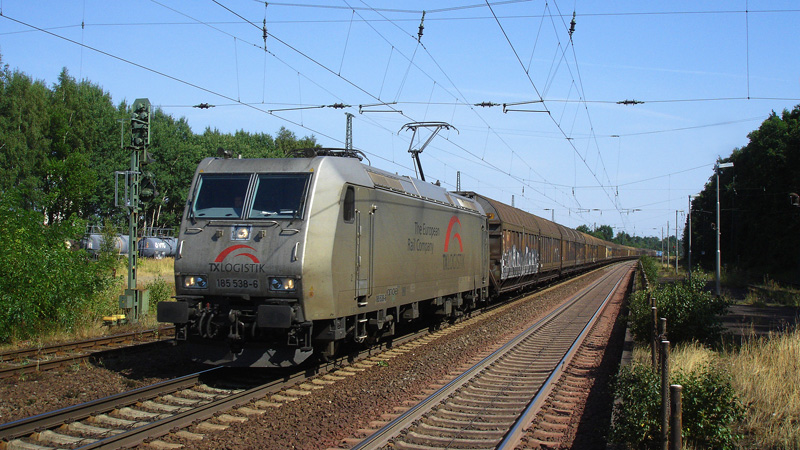 eine TXL-Leistung in den Norden, diesmal bringt die 185 538-6 einen KLV-Zug