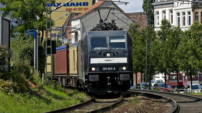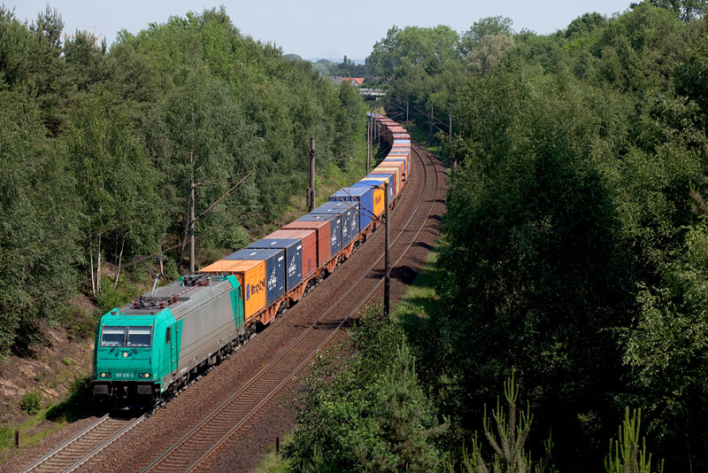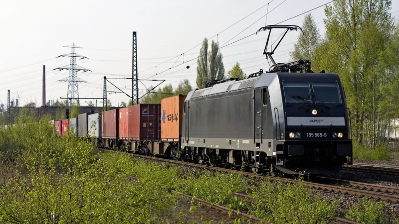 zur Zeit für die TX Logistik fahrende 185 565-9 hatte einen Containerzug