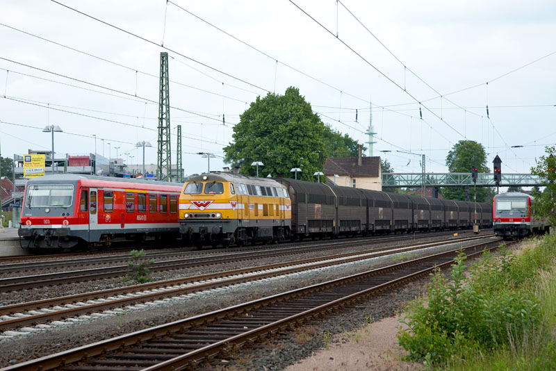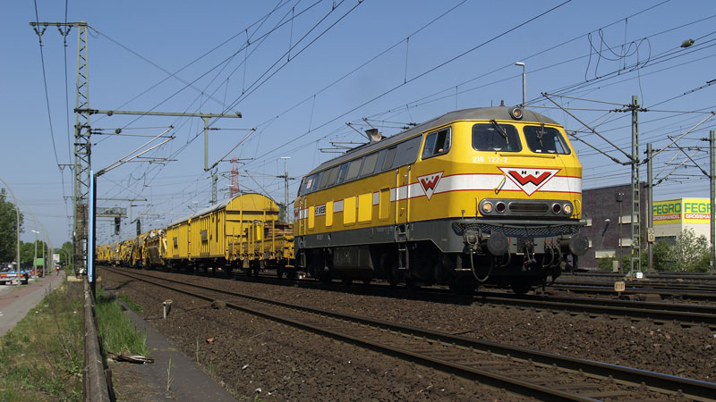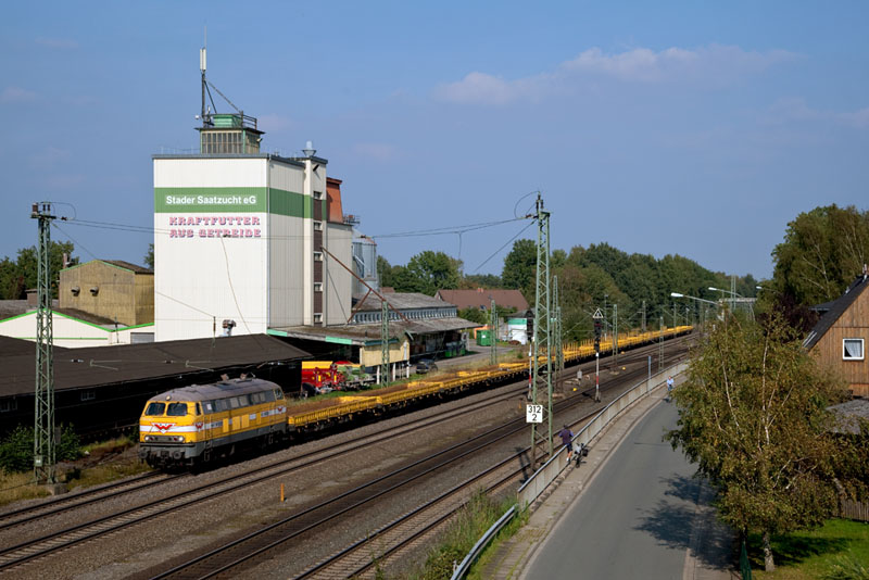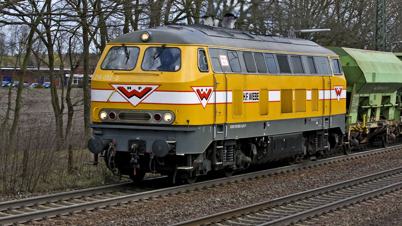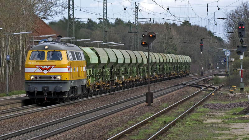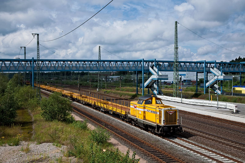 Einen H.F. WIEBE-Schotterzug hatte die unternehmenseigene 216 012-5 am Haken.