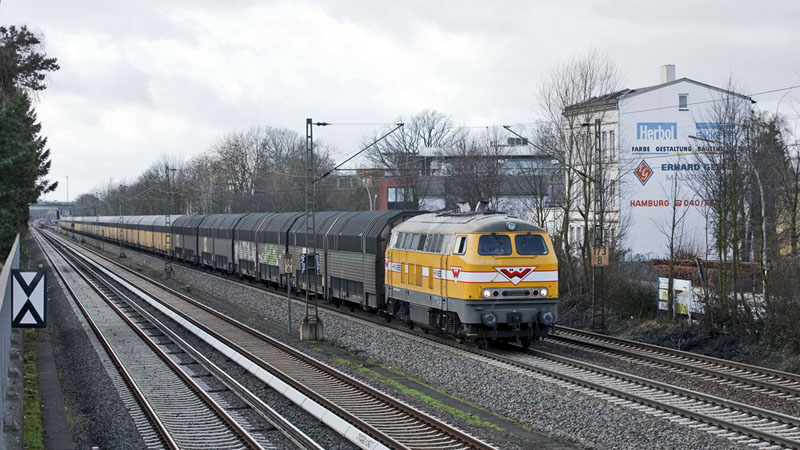 Endlich hab ich die H.F. WIEBE vor einem ARS-Autologistikzug – hier die 216 032-3 von Cuxhaven kommend.