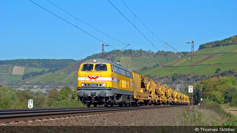 Himmelstadt im Maintal schleppt sie einen schweren Bauzug gen Süden.