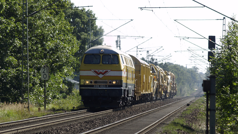 Wiebe 320 001 kommt im Bauzugdienst weit herum in Deutschland. Hier bei